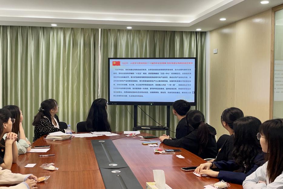 在“第一议题”学习环节,曲楠楠书记带领全体党员共同学习了党的二十届四中全会精神,聚焦高标准建设海南自由贸易港的核心要求。党员们纷纷表示,将以此次学习为契机,强化理论武装,牢记初心使命,把学习成果转化为服务社会、精进专业的实际行动。