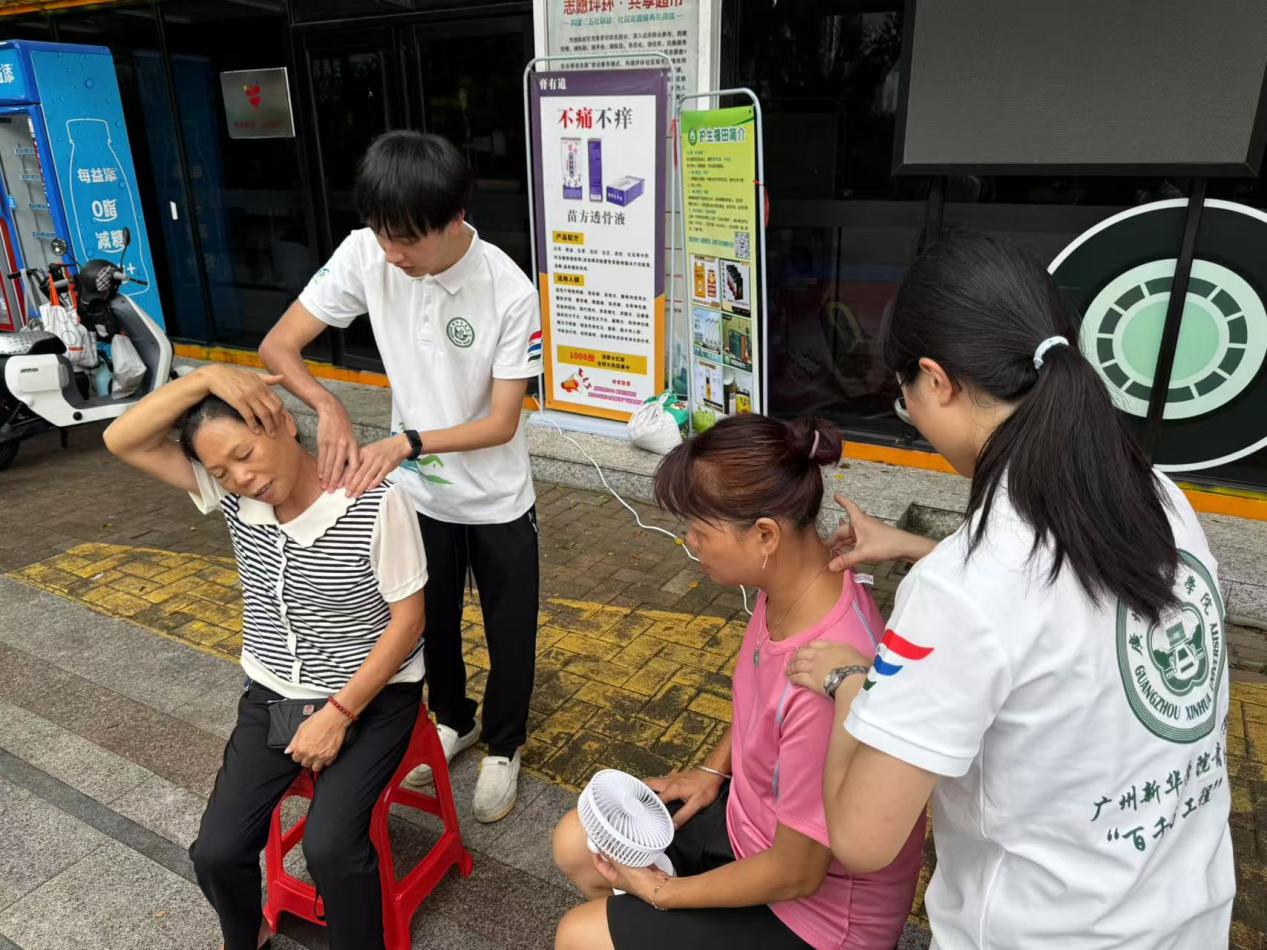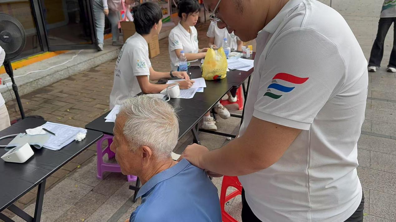 4.推拿按摩区:“还青禾”队员们运用专业的手法,为居民提供舒缓肌肉疲劳、促进血液循环的推拿按摩服务。此外,队员们还结合中医理论,向居民普及经络养生知识,让参与者感受到传统医学的魅力与实用性,使其成为全场最受欢迎的“C位摊位”,现场赞叹声与感谢声不绝于耳。