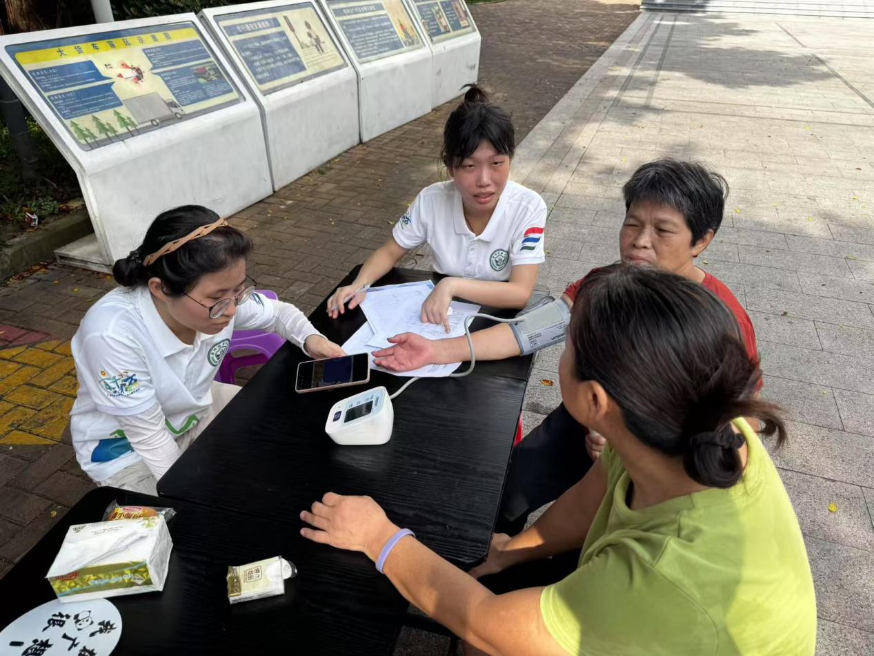 2025年7月9日上午8时,随着坪环社区广场的第一顶帐篷被缓缓掀开,广州新华学院“还青禾”突击队暑期“三下乡”社会实践活动于深圳市坪山区正式拉开帷幕。本次实践活动聚焦健康服务,通过开展血糖血氧监测、血压测量、推拿按摩、健康知识普及环节,致力于为社区居民提供全方位的健康服务体验。