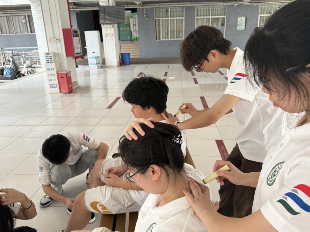 除此之外,每位突击队成员还在指导老师的陪同下,彼此切磋理疗技能,从服务者和受服务者的角度不断调整与改善彼此间的操作手法,进行反复实践和训练,使得自身的中医理疗技能日趋成熟,游刃有余。