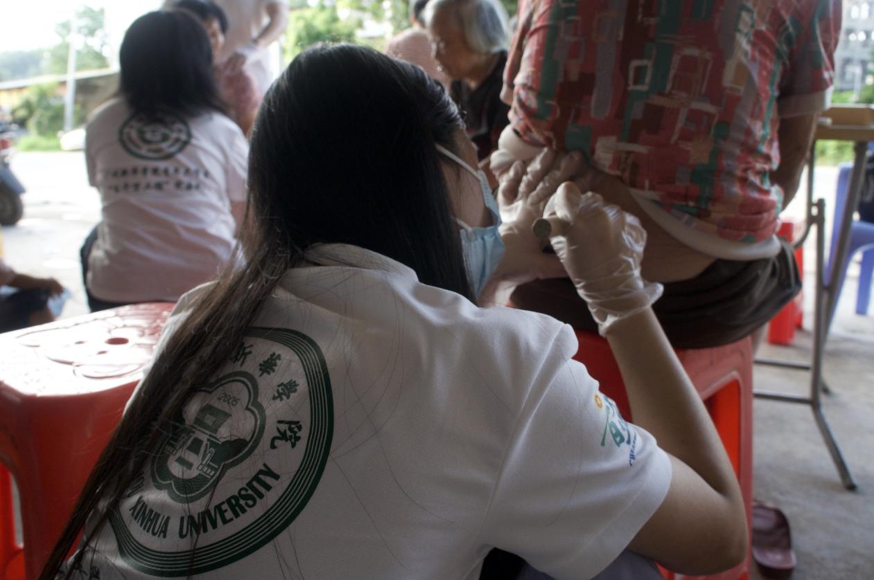 高州市人民医院中医科的医护团队,在14日早上九点迎来了一批前来学习的队员。在诊室里,带队医生谢懋华主任为突击队介绍了中医科的科室概况与发展历史,让突击队对当地的中西医结合医疗系统有了深入的认识,同时,谢医生还带领突击队观摩医生进行中药理疗的全过程,学习如何用艾灸、小针刀疗法对病人进行治疗,并给突击队介绍了如五仪膏一些医院自研药物,为队伍提供中西医结合治疗的一条新思路。