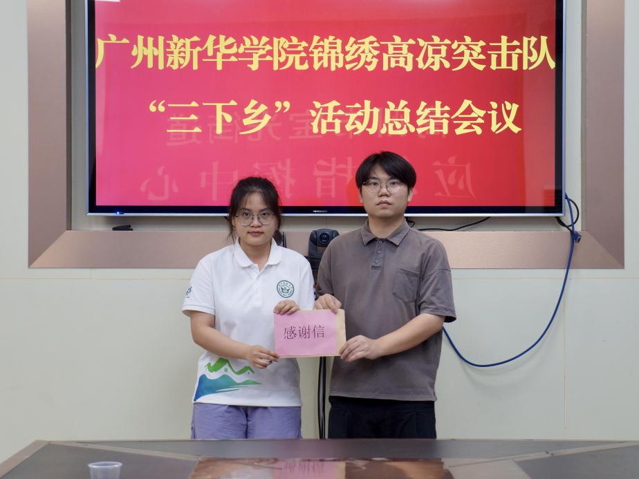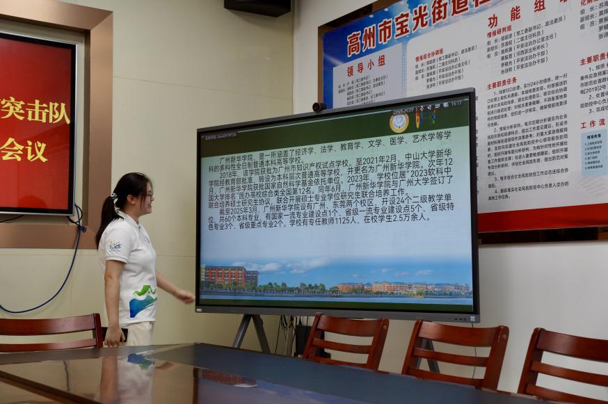 结束此次下乡最后一次的健康服务活动后,突击队在下午专程拜访高州市宝光街道办事处团工委负责人吴锡明进行感谢。正是得益于团工委的在地协调,突击队深入平江社区开展“中西医结合改善老年慢性支气管炎”的服务才得以顺利推进;而正是社工团队带领突击队走入千家万户,组织志愿者协助开展调研和清扫志愿活动,才有效扩大了突击队的服务覆盖面。会议中,宝光街道办事处团工委吴锡明负责人现场宣读感谢信,肯定了突击队艾灸推拿、排痰教学等惠民举措及王秀岚院长的专业指导,对突击队深入基层医疗、彰显青年担当表达了极高的赞赏,并表达对后续协作共筑健康乡村的期待。会议最后,副队长同步展示学校宣传PPT,系统展示广州新华学院在民办高校的学术优势与人才培养成果。