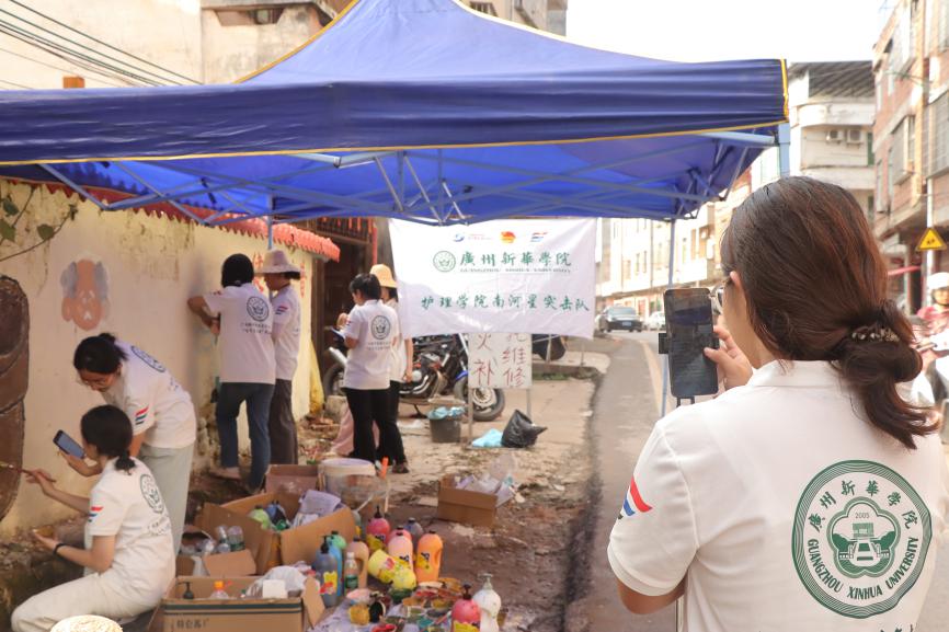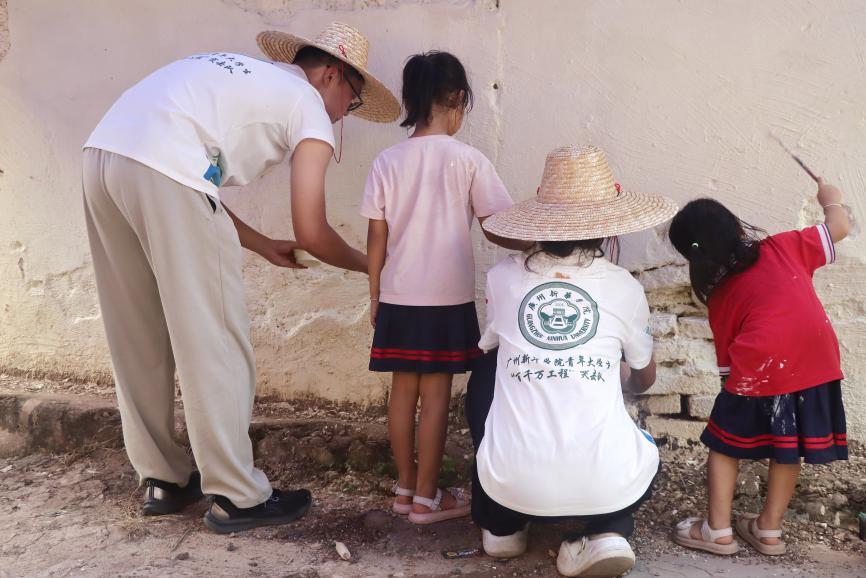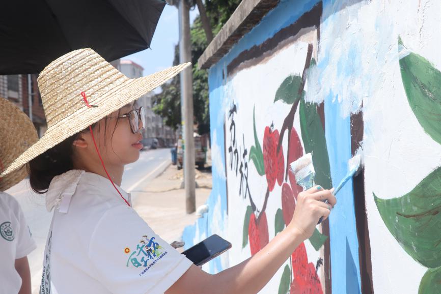 7月15日,广州新华学院护理学院南河星突击队在罗定市生江镇继续践行助力乡村振兴的使命,将专业知识与墙绘创作相结合,为乡村发展贡献独特力量。