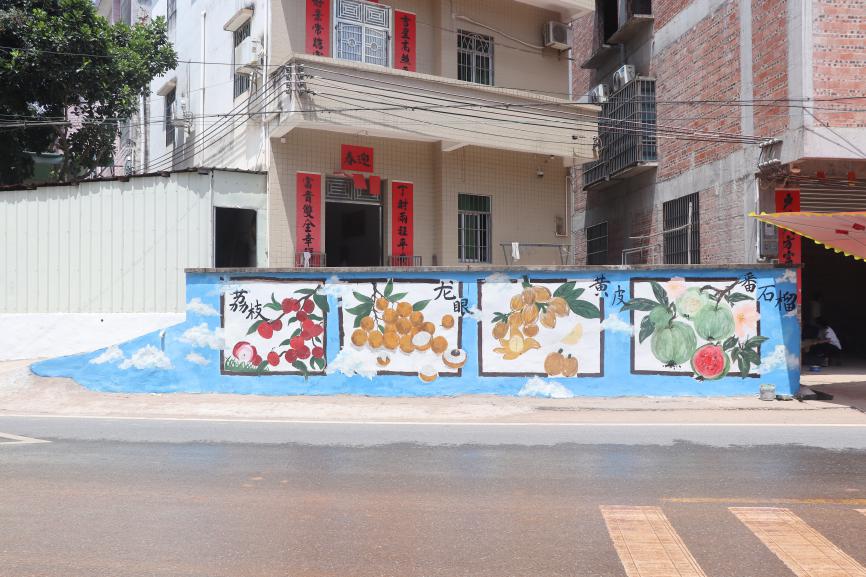 其中,风湿性关节炎科普墙绘通过图文结合的方式,直观呈现疾病预防要点、日常护理知识,让专业健康知识以更易接受的形式融入乡村生活;健康八段锦主题墙绘精准勾勒标准动作并配以简洁解说,引导村民通过传统养生功法增强体质;农作物宣传墙绘则以荔枝、龙眼等当地特色物产为创作素材,生动展现乡村自然与产业魅力。