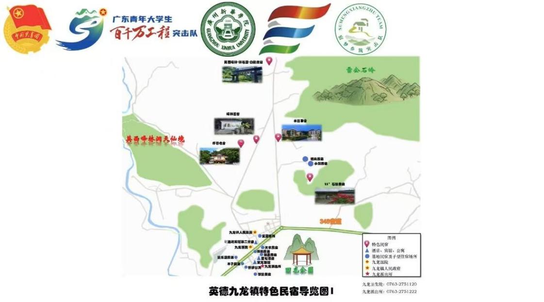 导语:7月12日至7月20日,广州新华学院宿梦乡筑突击队深入清远市英德市九龙镇,以“线上宣传+线下联动”的模式开展民宿推广活动,通过推文、视频、海报以及导览图等多元化的形式为当地特色文旅资源注入青春活力,也为九龙镇民宿的发展添砖加瓦。