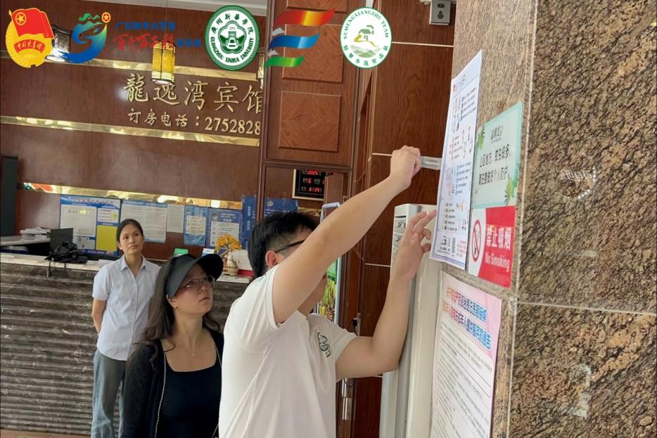导语:2025年7月19日,广州新华学院宿梦乡筑突击将应急守护融入文旅脉络,携四项应急指引海报奔赴英德市九龙镇民宿。从政府对接展示巧思,到民宿张贴传递关怀,用专业设计与贴心行动,为民宿安全添注温暖底色 。