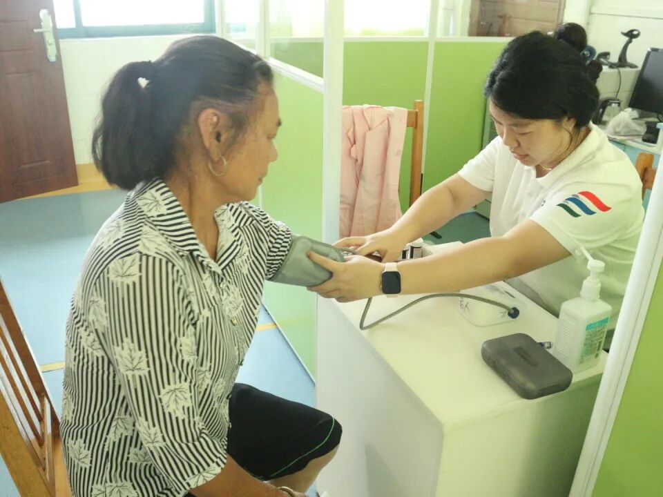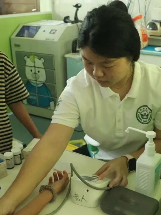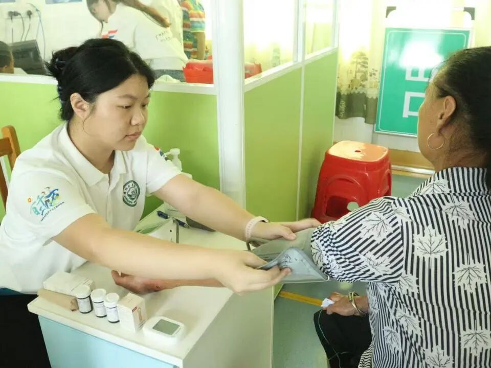 血压计、登记表、健康宣传手册整齐摆放。村民们听说有大学生来免费测血压,早早排起了长队,其中既有头发花白的老人,也有背着孩子的中年人。“大爷,您坐好,袖子卷到胳膊肘就行,放轻松……”队员们一边熟练地为村民绑好袖带、调试仪器,一边轻声安抚紧张的老人。测量过程中,他们仔细记录每位村民的血压数值,对血压偏高或偏低的村民,耐心询问日常饮食、作息习惯,结合医学知识给出针对性建议:“平时要少盐少糖,多吃新鲜蔬菜”“早晨起来慢慢起身,别猛地站起来”“如果经常头晕,一定要及时去镇上医院复查”。