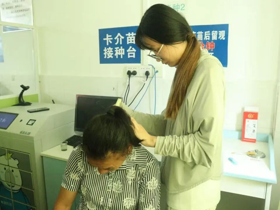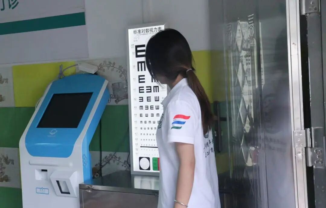 团队成员严格按照标准流程,耐心地引导群众们辨认"E"字方向。使用专业设备为村民检测视力,详细记录数据。针对视力较差的人群,团队联合卫生院医生给出进一步检查建议,引导他们关注自身视力健康。