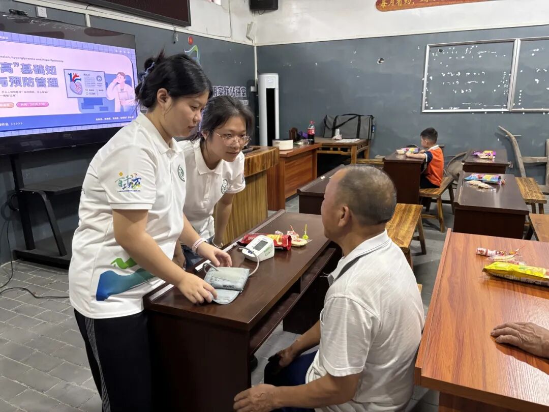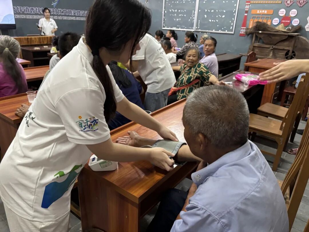 讲解过程中,团队成员还现场为村民测量血压,并根据测量结果给予个性化的健康指导。72岁的张爷爷听完后感慨道:“原来头晕不一定是累的,可能是血压问题,以后得按时吃药了!”许多老人认真听取健康建议,表示要将这些知识运用到日常生活中。