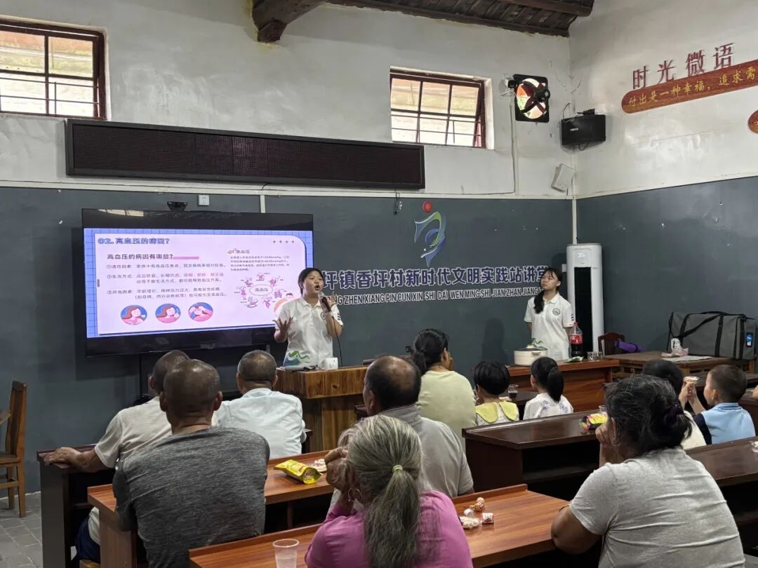清远市连南瑶族自治县香坪镇因地处偏远,医疗资源相对匮乏,村民健康意识亟待提升。青年实践队带着“三高”防治课程走进香坪。主讲人举图说病、耐心答疑,把高血压、高血糖、高血脂的“防、控、管”拆解成顺口溜、家常话。村民们认真听讲,不时举手提问,现场气氛热烈。