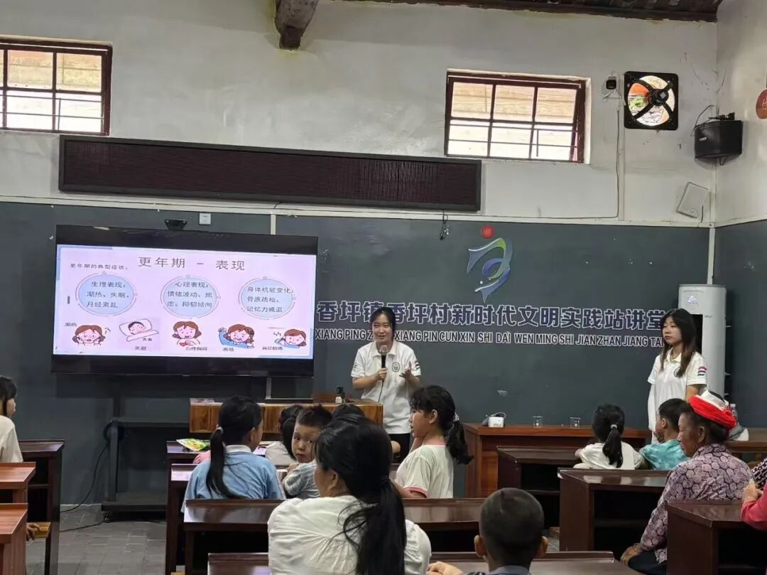 针对更年期女性的健康问题,我们从潮热、失眠等常见表现的应对,到情绪调节的有效方法,再到营养膳食的合理搭配,深入浅出的讲解让在场的女性村民频频点头。在交流互动环节,不少女性敞开心扉,倾诉自己在更年期遇到的困扰,现场氛围热烈而温暖。