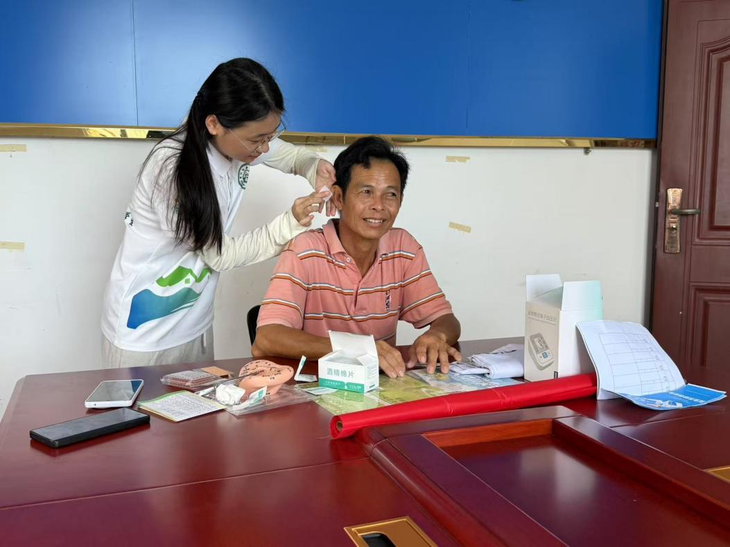 从晨光熹微到夕阳西沉,这一日的时光仿佛被两股力量牵引:中医理疗的掌心温度传递着当下的暖,村史馆的泛黄史料承载着历史的重。在中医理疗时村民们带着质朴的热忱而来,有的抱着自家结的龙眼,硬塞进突击队员手中,甜香瞬间弥漫;还有位阿婆,特意搬来家中的小板凳,说 “坐着得劲,你们使力也方便” 。