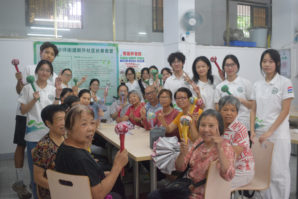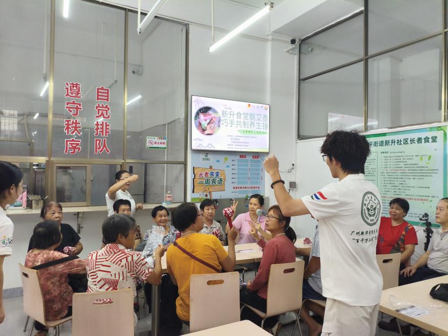 为丰富新升社区长者精神文化生活,增进邻里和谐,提升社区凝聚力,新升社区联合广州新华学院“百千万工程”杏林行者突击队,于7月14日下午在新升长者食堂开展“新升食堂飘艾香,巧手共制养生锤”主题公益服务活动。本次活动共吸引15位食堂长者参与。从传统中医文化传承的艾草锤制作,到共叙家常的温馨餐叙,每一个环节都彰显着对老年群体的深切关怀,诠释着新时代青年的责任担当。