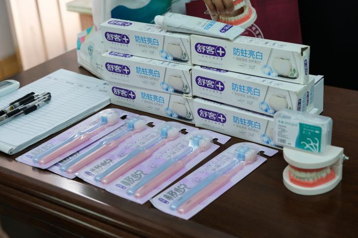 “牙龈总出血,是不是该补点啥?”“戴了十年的假牙最近总磨嘴,能调吗?”讲解刚毕,老人们便迫不及待地举手。队员们俯身倾听,细致作答:“牙龈出血可能是牙结石在‘捣乱’,也可能与维生素缺乏相关,先做个口腔检查最稳妥。”“假牙如同旧鞋,久了难免不合脚,及时找医生调整,千万别硬扛着疼。”贴心的解答配上分发的图文手册,让每个疑问都有了清晰的答案。
