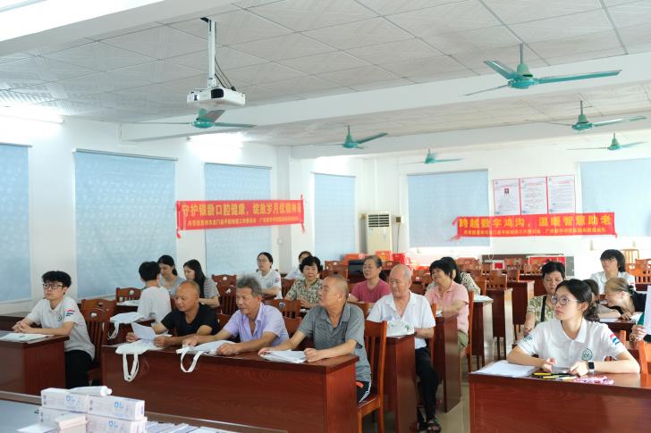 2025年7月17日,平陵社区党群服务中心内暖意融融。广州新华学院医路向阳突击队(以下简称“突击队”)的队员们带着专业与热忱,在此开启了健康科普系列讲座的首站。这场以口腔保健为主题的分享,如一场及时雨,滋润着在场每一位长者的健康需求。