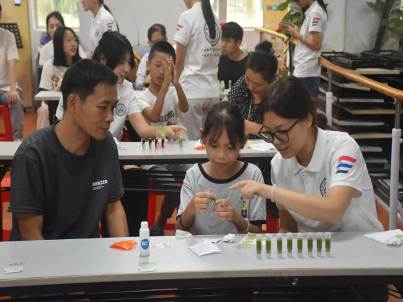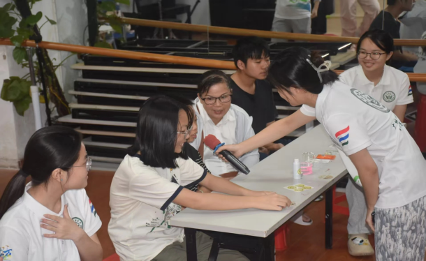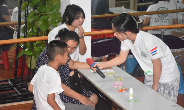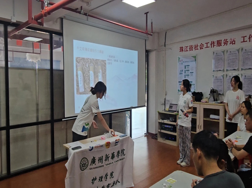 随后,副队长梁予卓借助PPT进行科普讲解。她首先阐明团队使命,以夏季高发的登革热为切入点,详细科普登革热的症状表现与科学预防措施,着重强调防蚊工作的重要性 。进而,引出本次活动主角——艾草与薄荷,与小朋友们趣味互动,介绍艾草的驱蚊、消炎作用,以及薄荷的清凉、止痒功效,说明活动旨在指导大家制作能有效缓解蚊虫叮咬不适,兼具天然性与安全性的艾草薄荷膏。