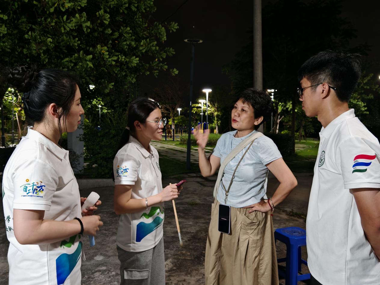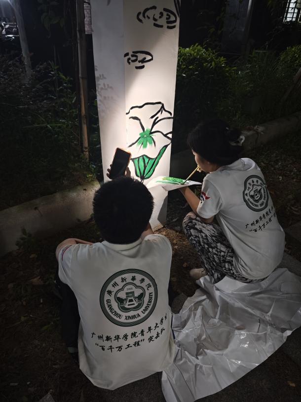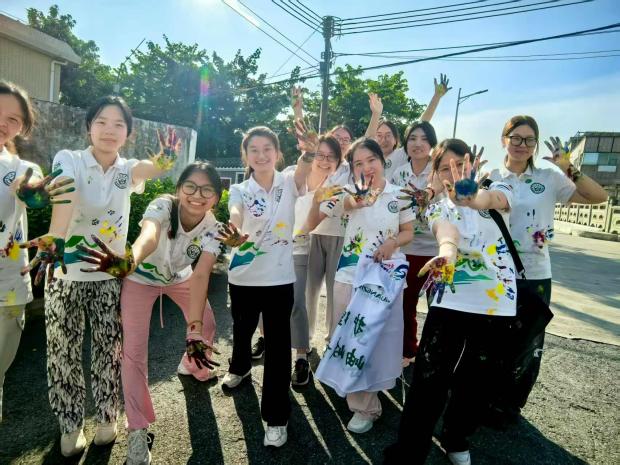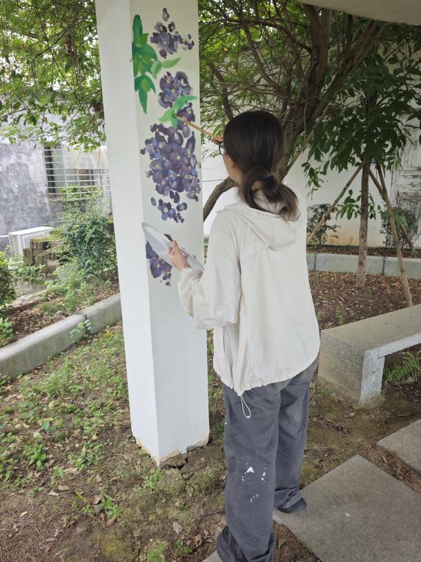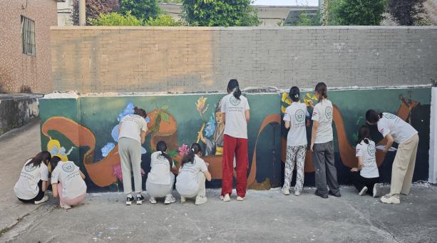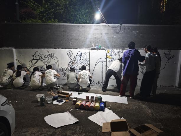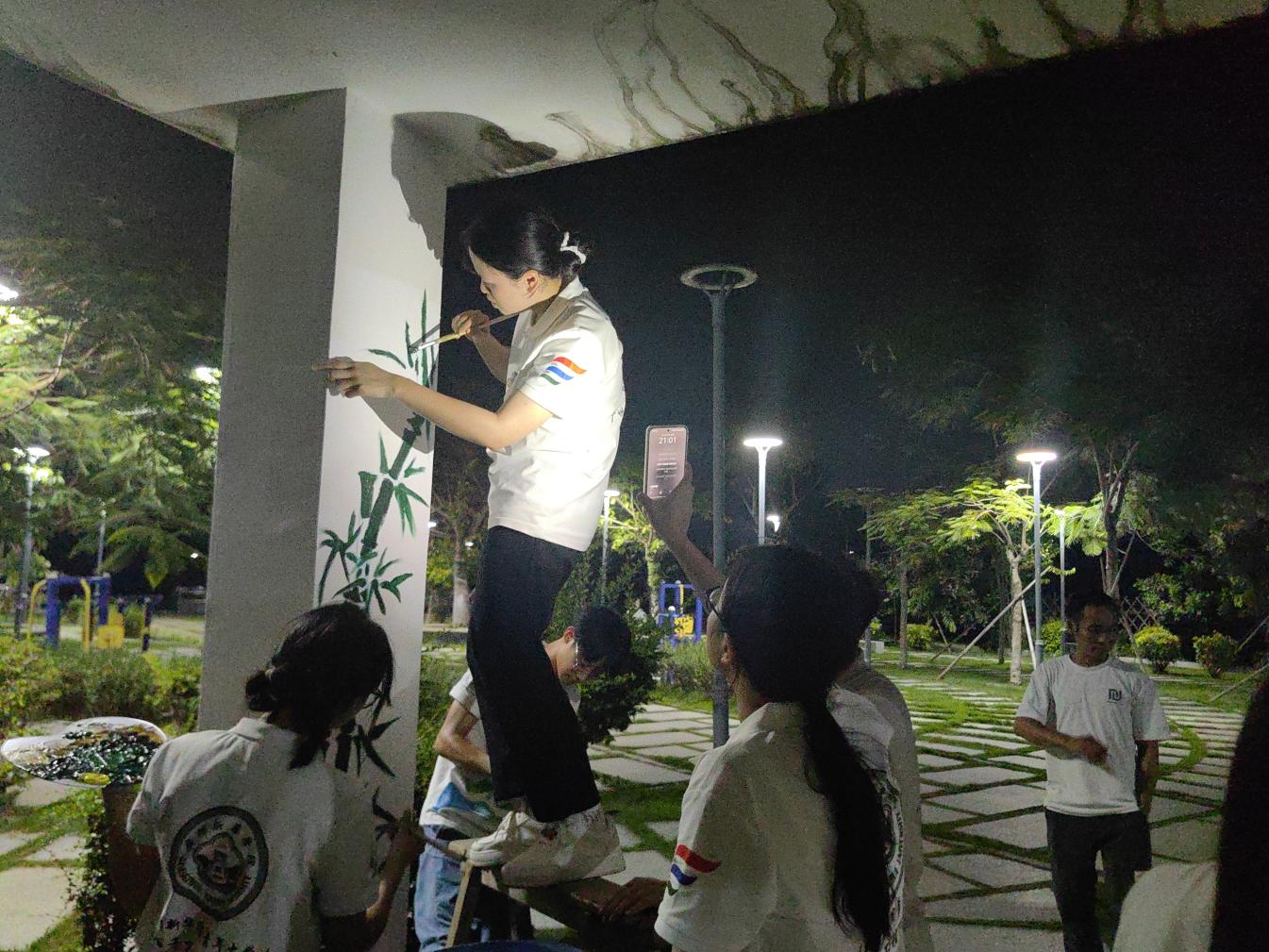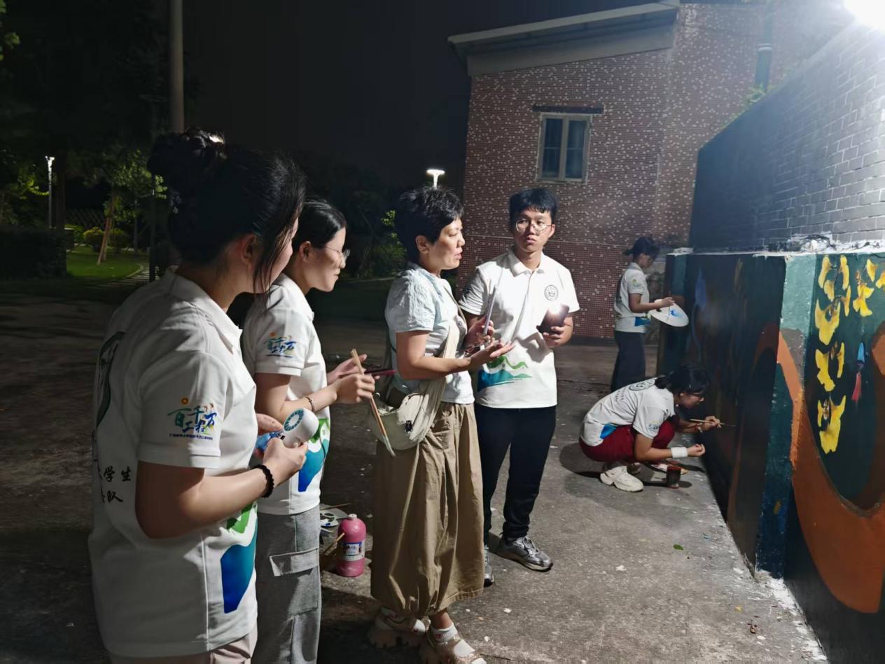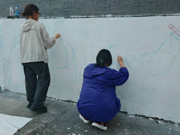 期间,团队面临多重挑战:每日上午需参与街道其他志愿服务,午后又遇台风将至的预警,为避免已完成的画稿被雨水破坏,队员们利用傍晚和夜间时间加班加点。“晚上光线不足,我们就举着手电筒照亮墙面,轮流接力绘画。”队长回忆道。队员们向附近居民寻求帮助后,居民主动为队员们悬挂临时照明灯,还搬来椅子方便大家绘制高处图案。“这些大学生为我们村做实事,我们搭把手是应该的。”居民阿叔说道。