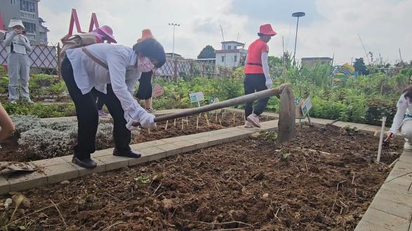 讲解结束后,队员们与参与者们分工协作,共同投入种苗劳作。劳作过程配合默契,充分展现中医药草种植实践的行动力和基层协作的凝聚力。
