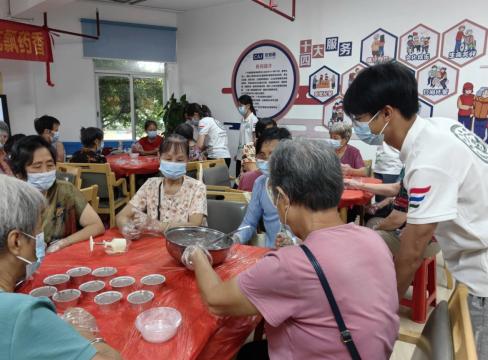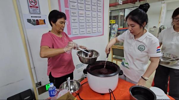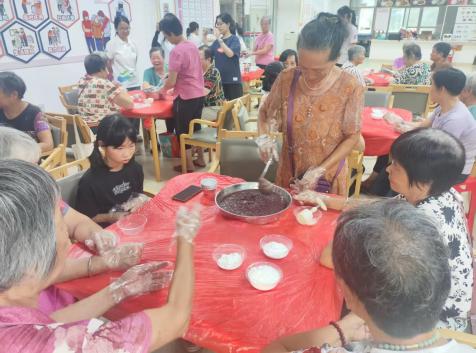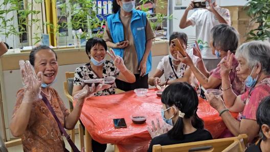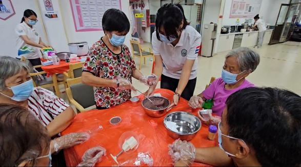 随即陈皮红豆糕也新鲜出炉,队员们将其摆上桌面,长者们用模具压花,让陈皮红豆糕在好吃之余,不失美观。长者们仔细品尝亲手制作的美味,软糯香甜的口感让大家沉浸其中。