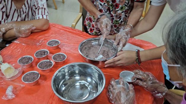 图3-6:长者们根据步骤制作陈皮红豆糕