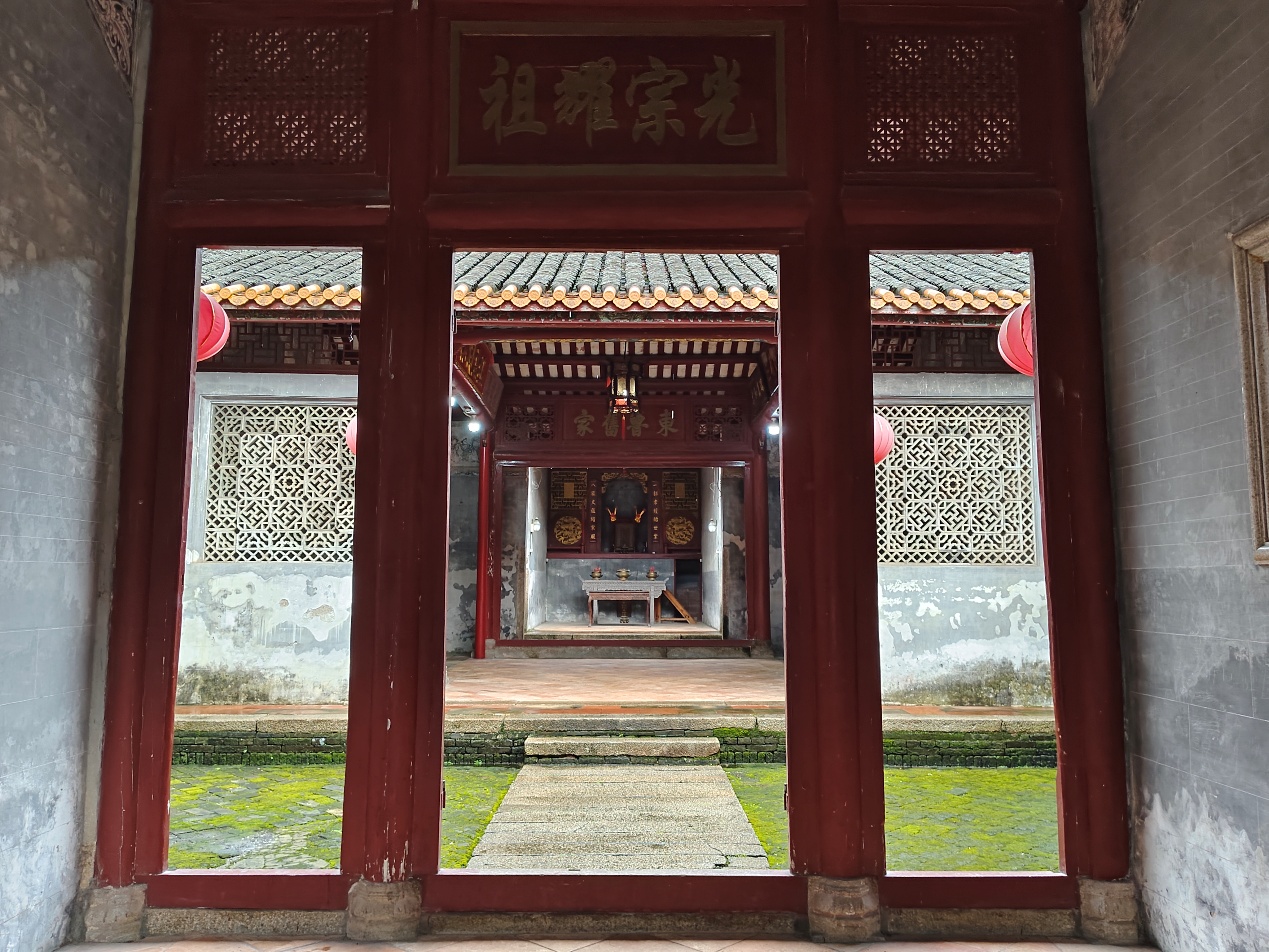 步入祠堂,抬头可见一方天井接引天光,四水归堂的排水系统历经两百余年依旧通畅。门槛石被岁月磨出温润包浆,祠堂内门槛与神龛的设置共同承载着客家宗族的文化根脉与精神内核。在这样的空间里,队员们意识到,宗祠不仅仅是一座建筑,更是一处凝聚族群认同的精神原乡,是维系情感、传递价值的重要纽带。