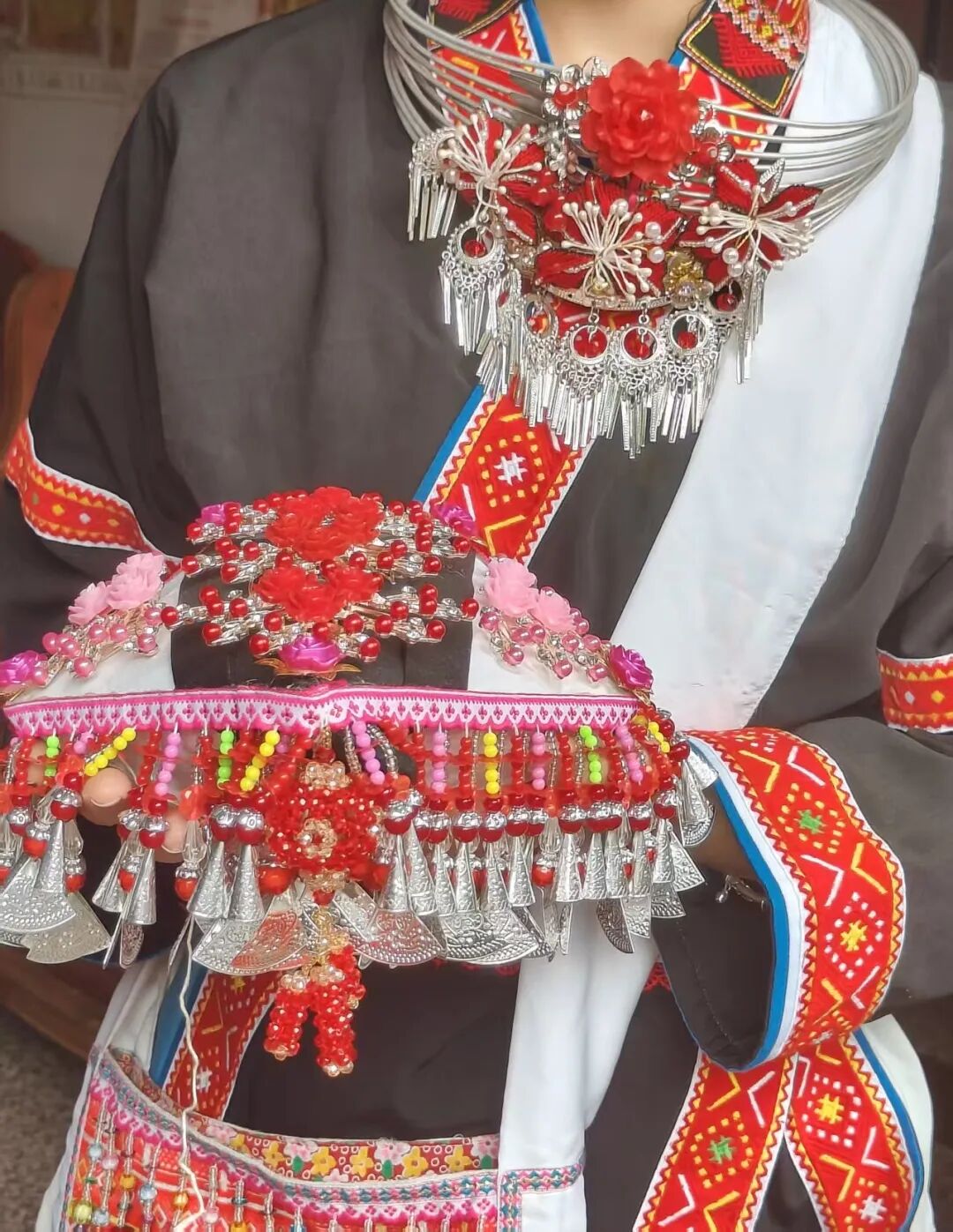 她小心翼翼地从柜子里拿出几件衣服和饰品,那是她亲手织就的瑶族服饰。每一件都像是艺术品,精美的图案、细腻的针脚,每一寸布料都承载着她的心血。我们忍不住惊叹出声,这些衣服不仅仅是为了遮体,更是瑶族人民对生活热爱的表达。