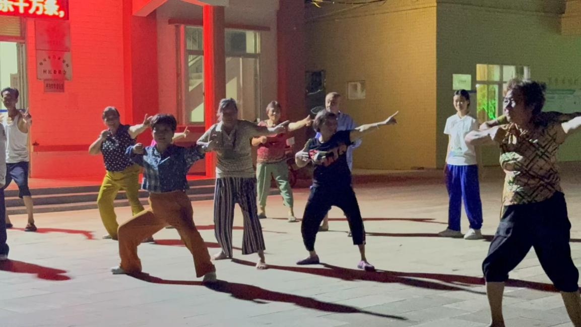 夜幕给许家寮村披上薄纱,村委会广场的灯泡亮起暖黄的光。护理学院院长站在场地中央,借着灯光给星火队员们拆解八段锦的 “调理脾胃须单举”:“注意看,沉肩时要像卸下担子,掌根慢慢推出去 —— 村里老人多有关节劳损,这个动作一定要轻缓,咱们先练熟了才能教到位。”