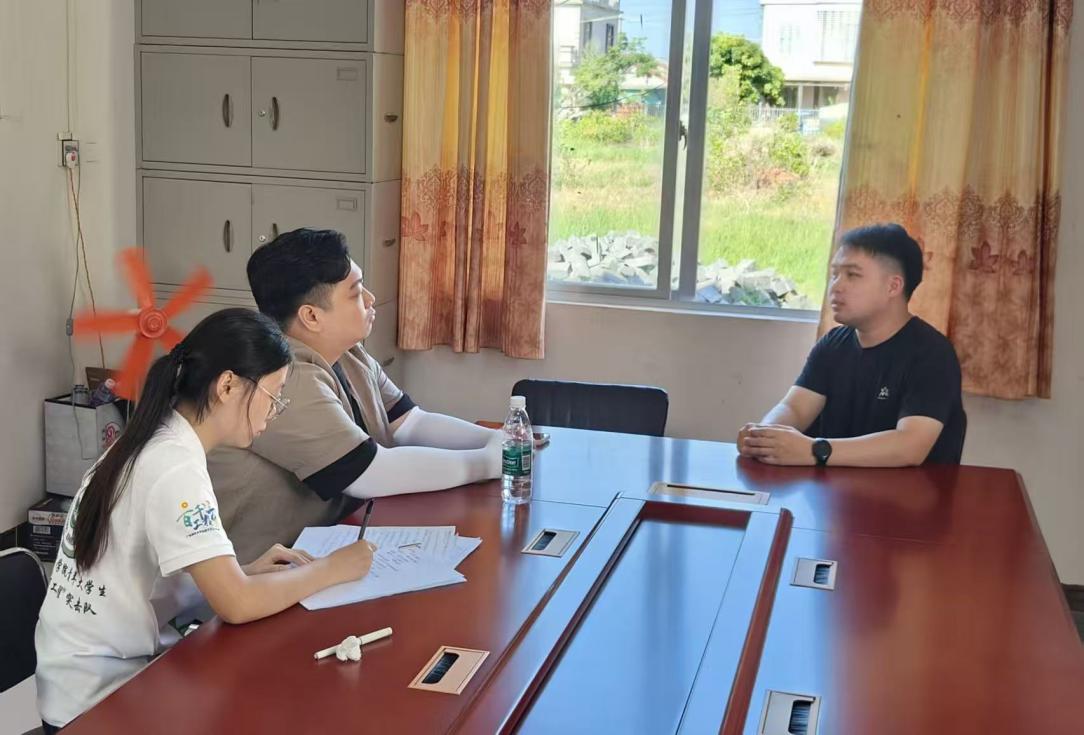 (图 2:队员与团支部书记交流空巢老人及留守儿童关怀)