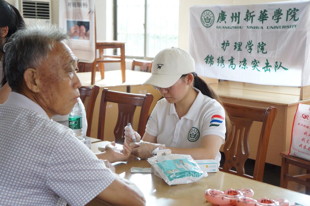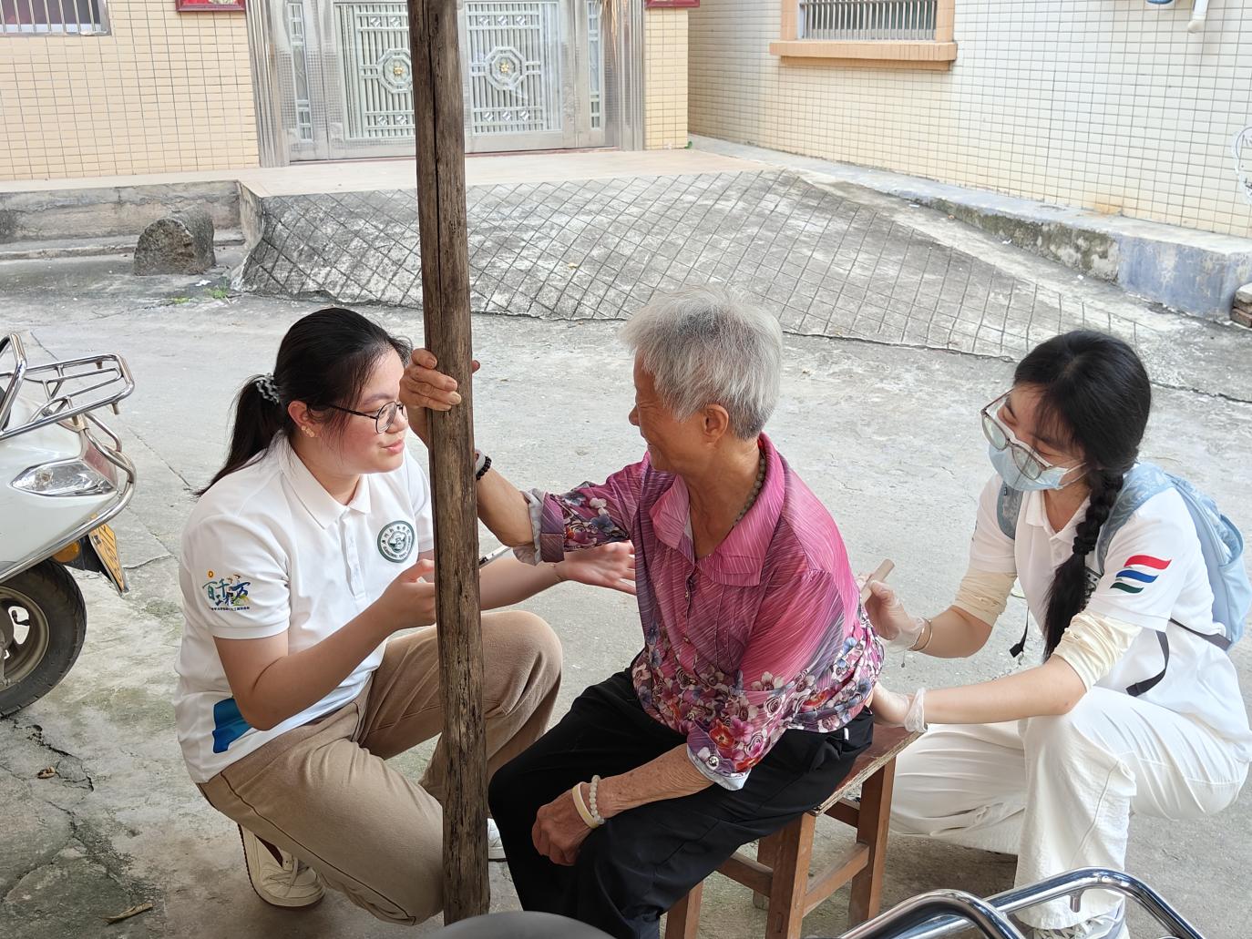 在党的二十大报告 “推进健康中国建设,把保障人民健康放在优先发展的战略位置” 精神指引下,为深入贯彻落实国家乡村振兴战略中 “提升农村公共服务水平,推进医养结合” 的政策要求,积极响应 “百千万工程” 关于大学生社会实践赋能基层治理的号召,广州新华学院锦绣高凉社会突击队(以下简称 “突击队”)于7月17日回访高州市宝光街道程村,并前往北江社区进行入户。此次活动紧扣 “中西医结合治疗老年慢性肺支气管炎” 的实践主题,通过专业服务与人文关怀相结合的方式,将健康中国战略的温暖触角延伸至社区末梢,用青春力量践行 “以人民为中心” 的发展思想,为构建城乡统筹的健康服务网络注入鲜活动能。