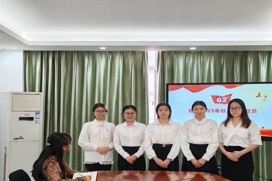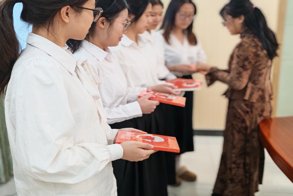 在庄严的无记名投票表决后,支部书记宣读大会决议,一致同意接收李可、肖梦琳、刘欣语、黄瑷旸、许敏五位同志为中共预备党员。同时为新接收的预备党员佩戴党员徽章、发放《中国共产党章程》,向新加入党组织的同志表示热烈祝贺。