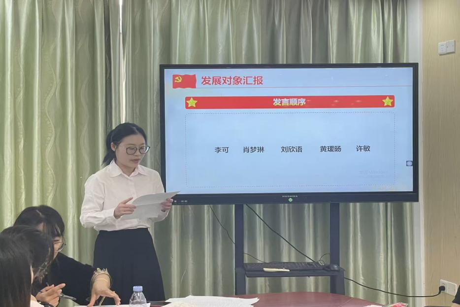 随后,入党介绍人分别介绍了五位发展对象的具体情况,客观评价其优点与不足,并明确表态支持其加入中国共产党。支部委员吴甜甜同志逐项报告了对发展对象的审查情况及党内外群众意见征集结果,为大会民主决策提供了扎实依据。与会正式党员围绕发展对象表现展开充分讨论,进一步加深了对五位同志的了解。