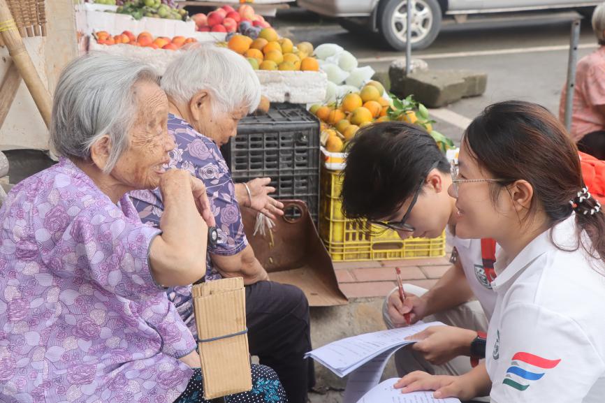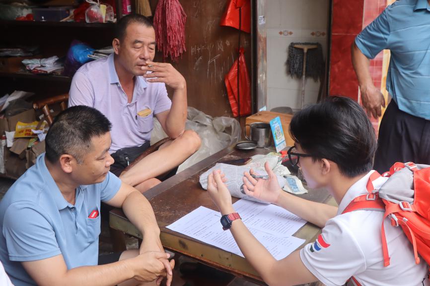 调研过程中,队员们根据受访对象灵活调整方式:对老年人采用口头问答形式完成问卷,年轻人或中年人则邀请其自行填写。摄影组在征得同意后全程记录调研过程。指导老师沈香香全程跟进,及时纠正采访话术,帮助队员们从最初的拘谨逐渐变得自信从容。从上午8点到11点半,两个小组走街串巷,深入了解当地居民对风湿病的认知情况。