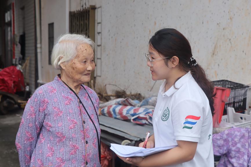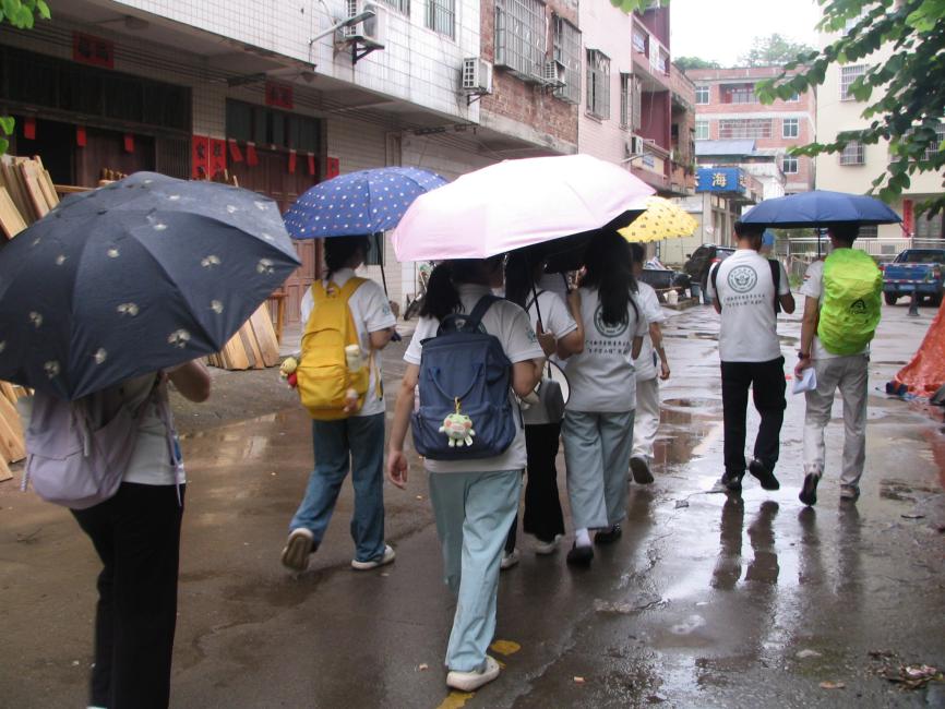 下午3点,天公不作美下起雨来,但队员们仍坚持冒雨开展调研工作。在走访过程中,大家克服天气影响,耐心倾听居民讲述,细致记录每一个细节。雨水打湿了队员们的衣衫,却浇不灭他们的工作热情。