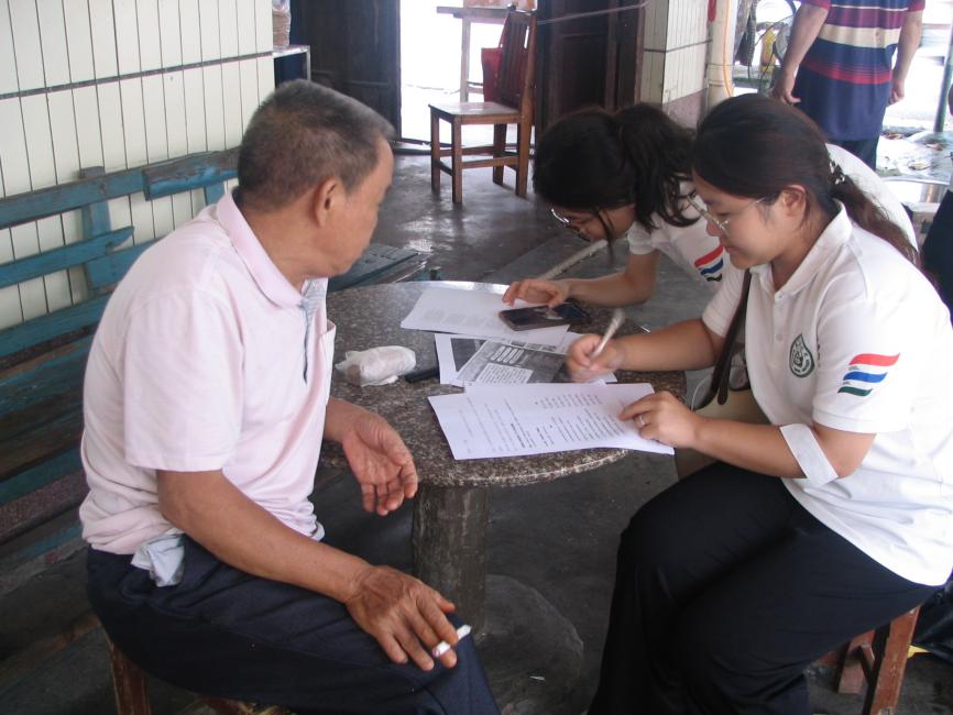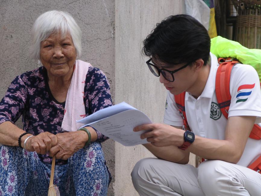 为队员们对当地居民进行问卷调研