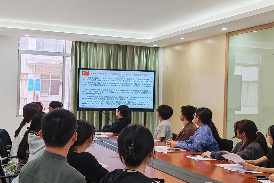 在“第一议题”学习环节,曲楠楠书记带领全体党员共同学习“实干担当 为民造福——习近平总书记引领全党树立和践行正确政绩观”,深入领会习近平总书记关于树立和践行正确政绩观的重要论述精神。