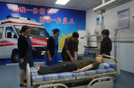 面试过后,于凤兰老师带着招聘老师们参观我们的护理实验实训中心,介绍了我们的先进设备以及平常同学们的练习项目。参观交流过程中,招聘老师们对我院实训中心的规范性和实用性给予了高度的评价。