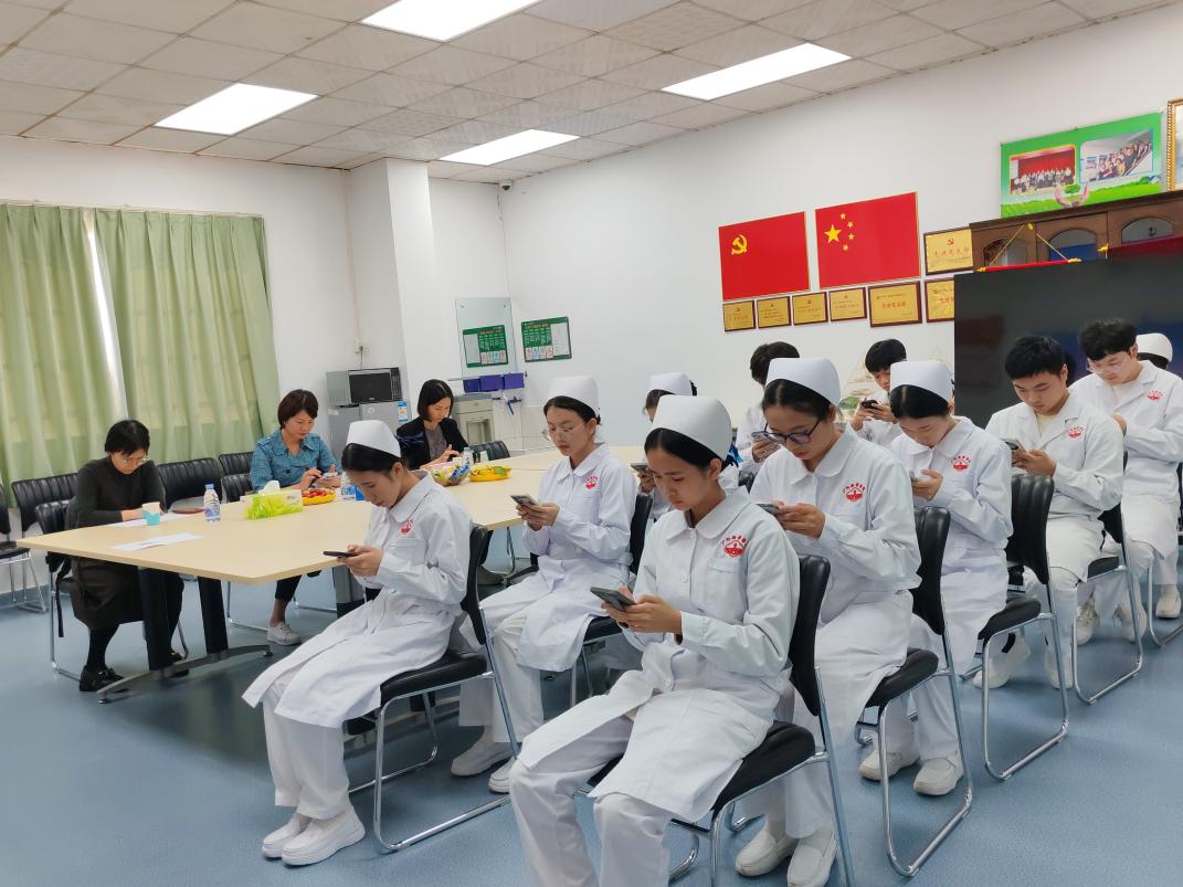 医院主任护师张淑婷、副主任护师高见枝、副主任护师魏丽霞在学院领导和老师的陪同下抵达实验实训中心,同学们以高涨的热情欢迎医院老师的到来,同时满怀期待,希望能通过此次招聘获得进入广东省中西医结合医院实习的宝贵机会。