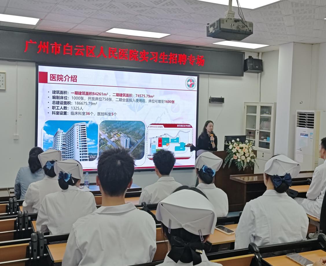 此次实习招聘面试分为医院宣讲、现场面试及笔试环节三个环节。医院宣讲环节,医院老师介绍了医院秉持“以患者为中心”的理念,临床护理与教学带教积淀深厚,规范的诊疗流程与完善的实习体系极具吸引力。同时,老师们鼓励同学们放松心态、大胆展现自身优势,并邀请大家日后踊跃报考医院,未来从师生携手变为同事并肩。