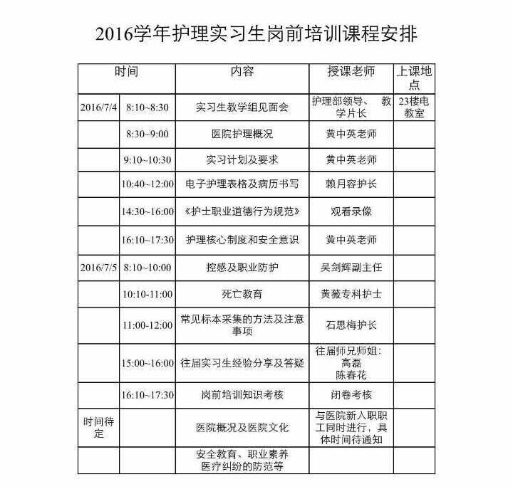 通过本次岗前培训,相信在场的实习生都能有所收获,在今后的实习工作中能够更好的将在校所学专业知识运用到临床中去,为病人服务,为护理事业尽一份力,努力成为适用于临床一线的高素质护理人才。