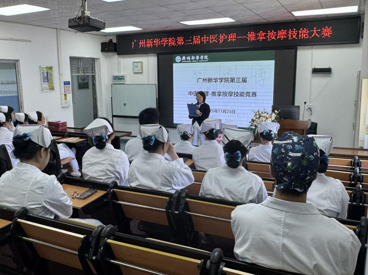 为促进中医护理事业的传承与发展,凸显中医特色护理优势,提高护理专业学生的中医操作技术能力,在学院领导的大力支持下,护理学院“第三届中医护理——推拿按摩技能竞赛”于2025年11月23日上午在实验实训中心成功举办。