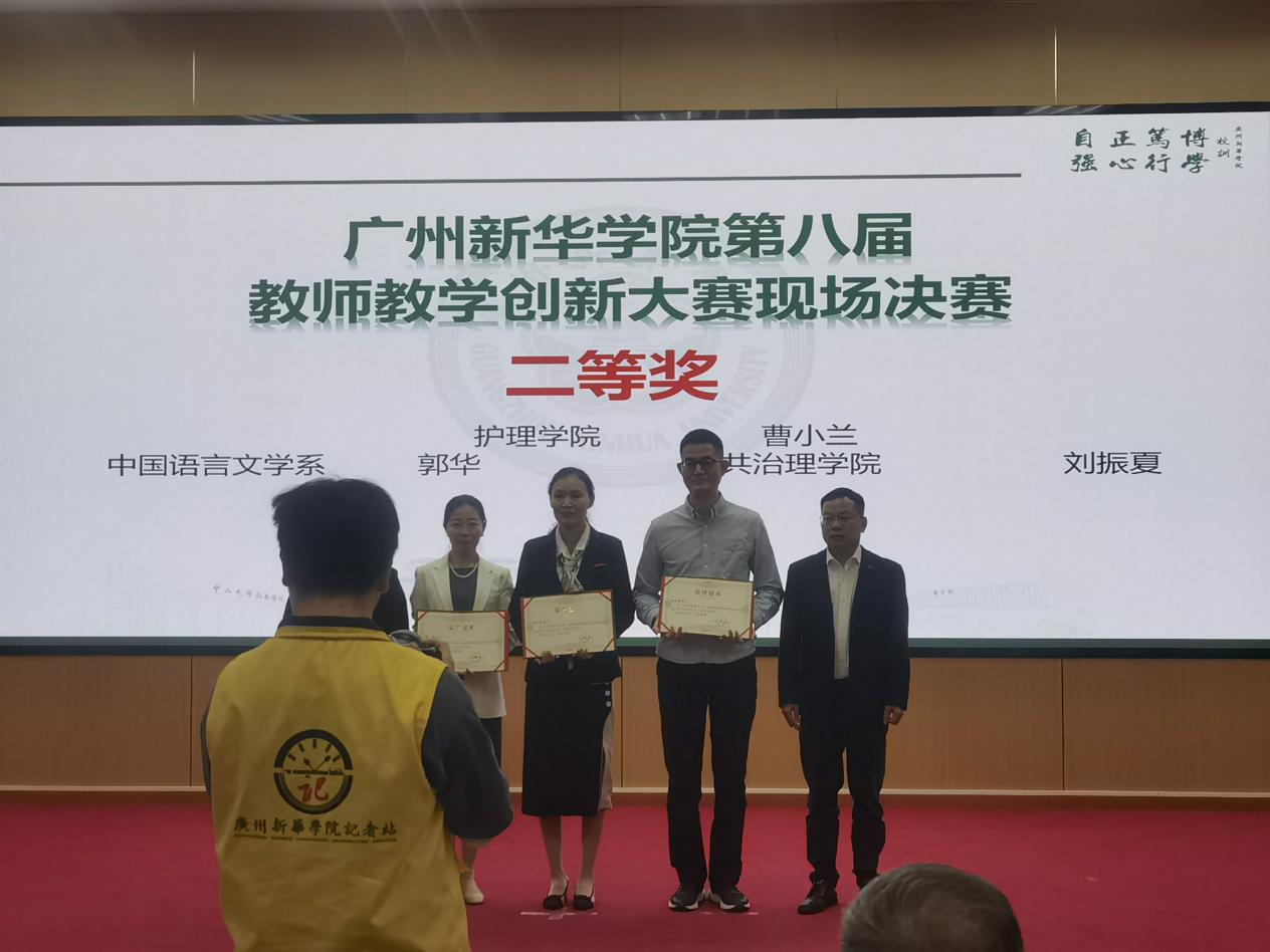 2025年12月23日,广州新华学院第八届教师教学创新大赛校级选拔赛在东莞校区定静楼①F403圆满落幕。全校13位优秀教师同台竞技、各展风采,护理学院曹小兰、聂君儿两位教师凭借扎实的教学功底与新颖的教学设计脱颖而出,最终曹小兰老师荣获二等奖,聂君儿老师荣获三等奖。