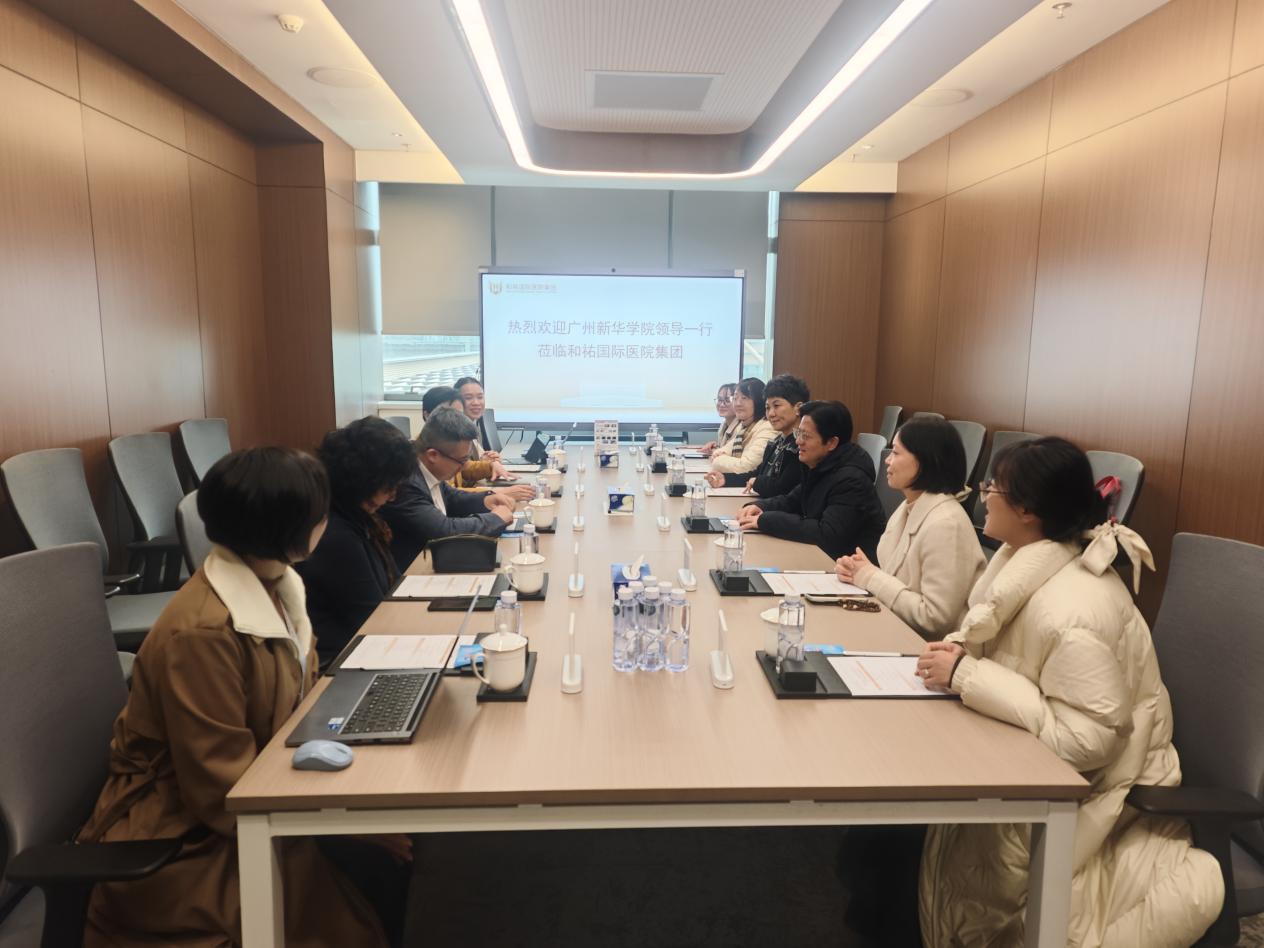 为积极响应粤港澳大湾区医疗人才培养需求,加强校企联动、推动产学研深度融合,2025年1月23日下午,广州新华学院(以下简称“我校”)党委书记郝登峰、护理学院院长王秀岚、副院长黄洛莹、汪丹博士、曲楠楠老师、何洁凝老师一行六人前往和祐国际医院集团(以下简称“和祐医院”)进行参观交流。和祐医院副院长李恒旭、护理部主任崔虹、教育与培训发展中心主任包品红、新生儿区护士长楚君、护理专业经理郭婉滢等负责人热情接待并陪同交流。