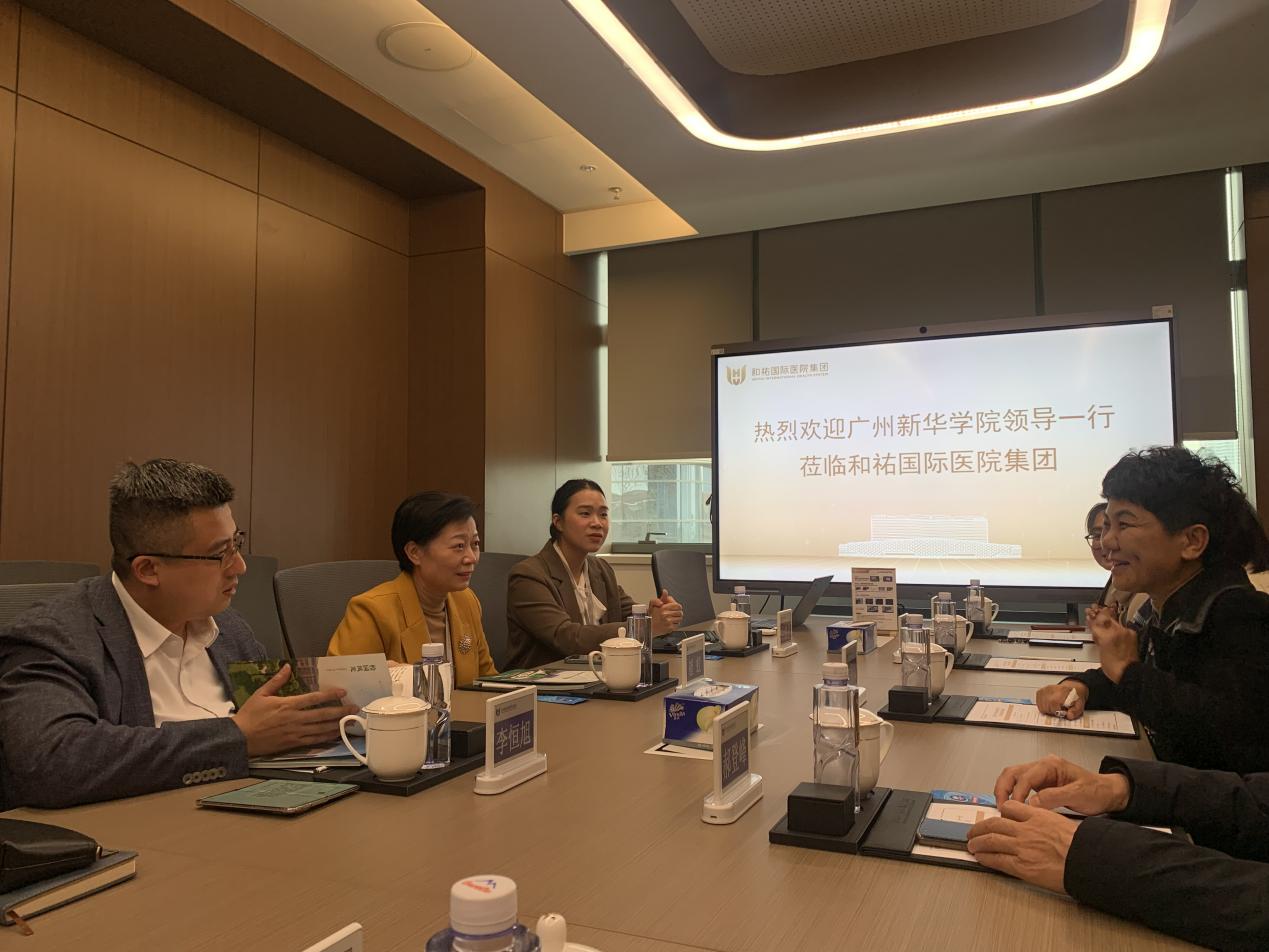 随后,双方在行政中心三楼会议室举行座谈。和祐医院李恒旭副院长首先对学校代表团的到访表示热烈欢迎,并简要介绍了医院的发展历程、办院理念、重点学科建设以及“星祐计划”人才培养体系。他表示,和祐医院作为美的控股投资建设的非营利性三级综合医院,始终坚持“和正精诚、祐护生命”的院训,高度重视人才引进与培养,期待与广州新华学院这样具有扎实教学基础和国际化视野的院校开展多层次、战略性的合作。